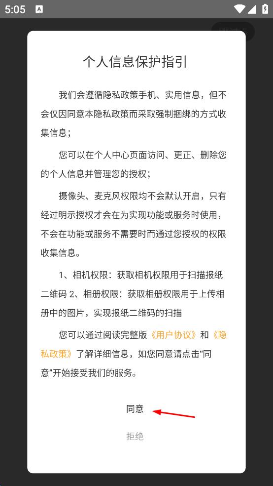 1、打開導(dǎo)嗒嗒,出現(xiàn)個人信息保護指引提示框,點擊同意。