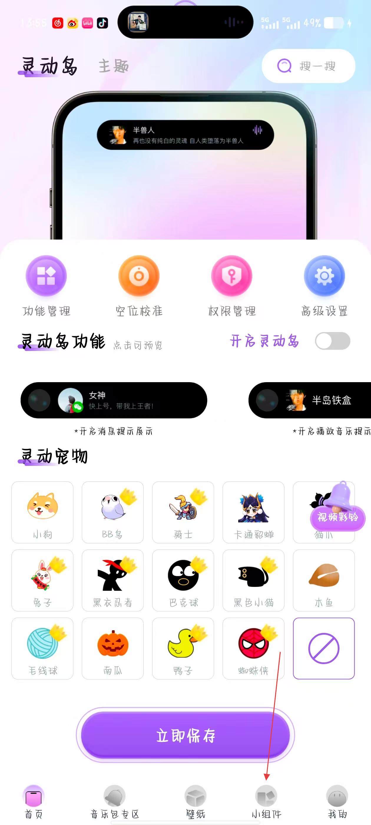 1、打開靈動(dòng)塢應(yīng)用,在首頁(yè)點(diǎn)擊底部導(dǎo)航欄的小組件選項(xiàng),進(jìn)入小組件選擇頁(yè)面。