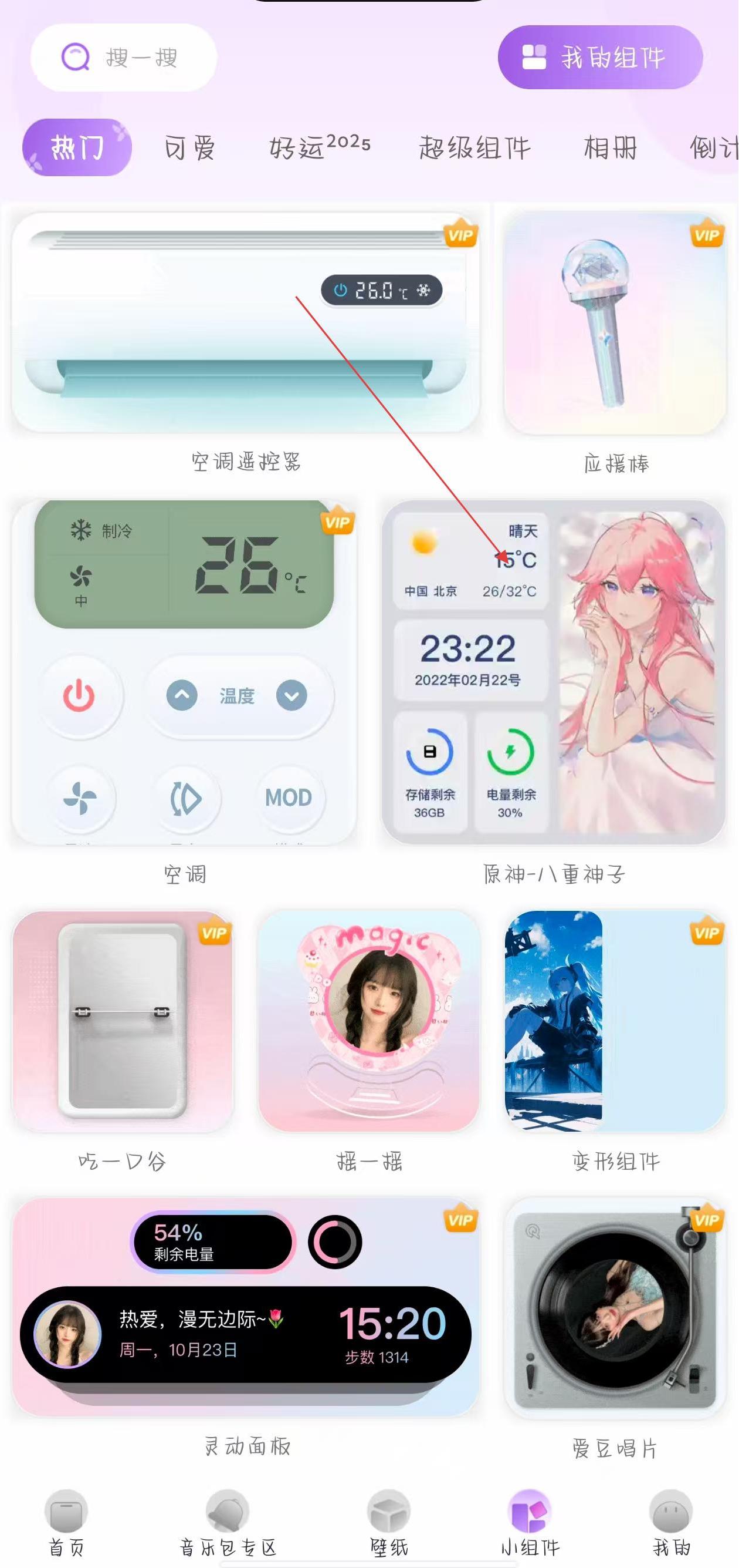 2、在小組件頁(yè)面中,選擇想要添加的小組件,點(diǎn)擊該小組件。