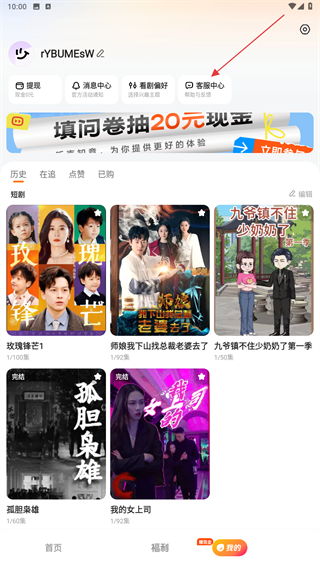 2、進(jìn)入個(gè)人主頁(yè)內(nèi),找到并點(diǎn)擊客服中心的按鈕。