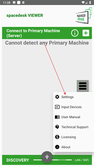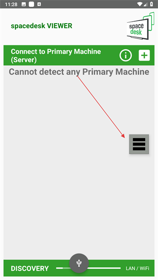 1、打開spacedesk應(yīng)用,點擊三條橫線圖標(biāo),將會彈出菜單。