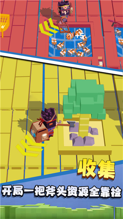 1、開局是最難的,也是最有趣的,用你手中的斧子去島上搜集各種資源;