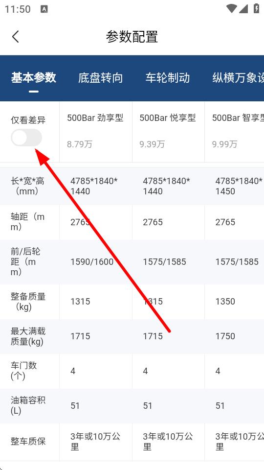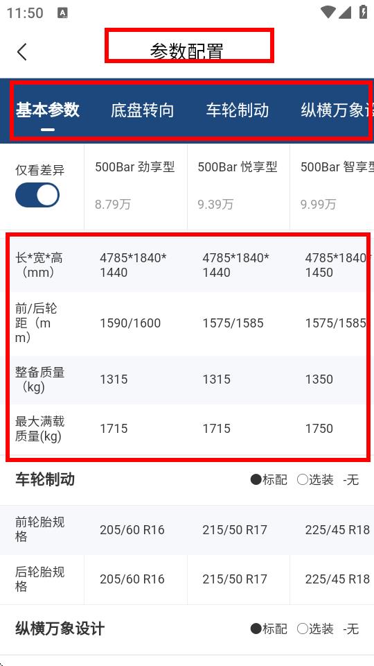 4、打開后方便查看不同車型參數(shù)的區(qū)別。