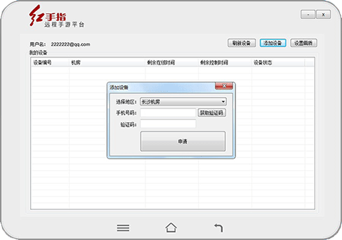 第三步:點了添加設(shè)備后。這里需要輸入手機號碼。點獲取驗證碼。等手機收到驗證碼后。輸入驗證碼,再點申請。 (注:這是需要綁定手機的。一部手機只能申請一臺設(shè)備。)