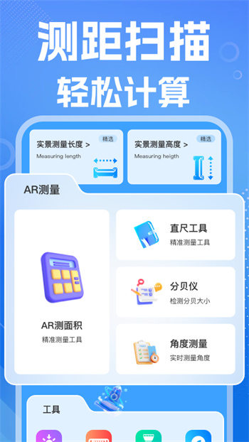 AI尺子測(cè)距儀軟件是一款非常好用的智能測(cè)距工具,不論是角度還是長度都能通過軟件進(jìn)行調(diào)整,同時(shí)還能看到豐富多樣的其他工具,都能滿足用戶的日常學(xué)習(xí)或者工作需求,并且這些工具完全免費(fèi),無需支付任何的費(fèi)用,可以放心下載使用。