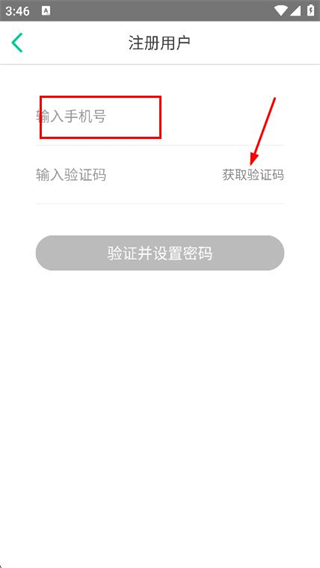 2、在注冊(cè)用戶頁面,點(diǎn)擊輸入框,在輸入框內(nèi)填寫需要注冊(cè)的手機(jī)號(hào)。