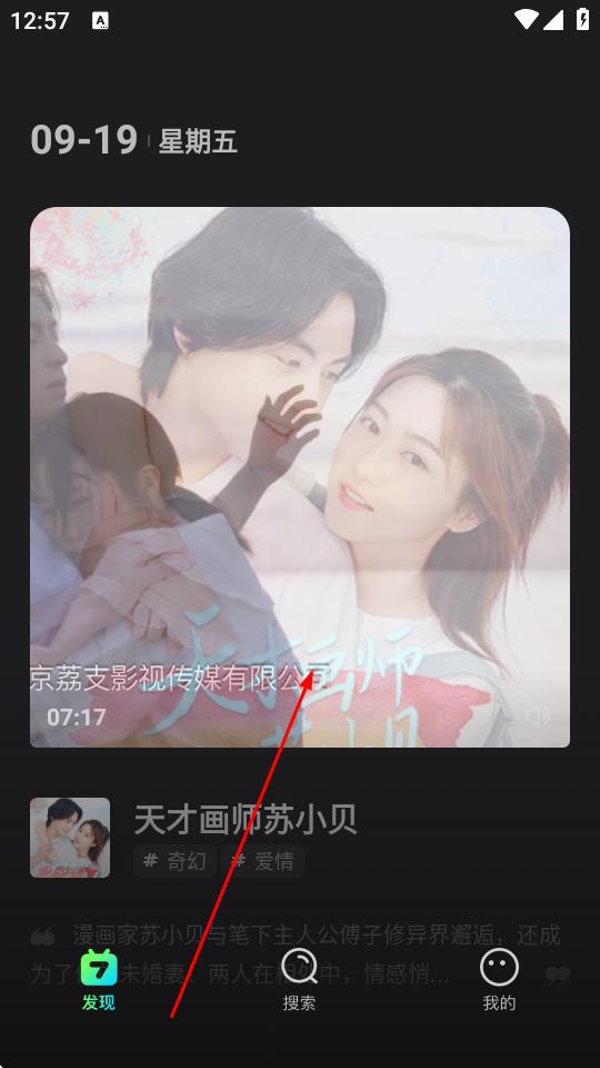 4、返回發(fā)現(xiàn)頁面,選擇一部想看的短劇,如天才畫師蘇小貝,點擊進入播放。
