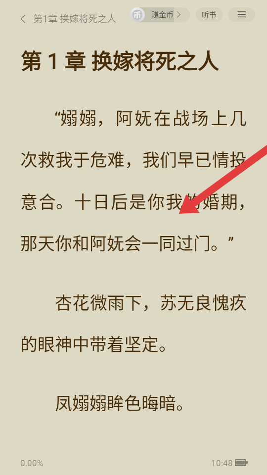 2、在小說閱讀界面,點擊頁面任意的位置,喚起底部的功能欄。