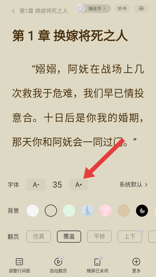4、在設置面板中,點擊A+放大字體或A-縮小字體按鈕,將字體調(diào)整至合適大小。