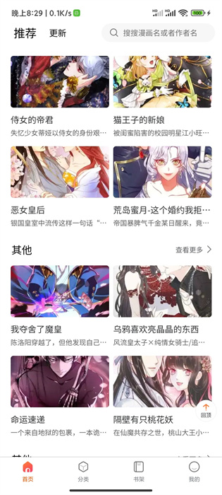 璃米漫畫app是一款專門給用戶帶來高清流暢漫畫資源的平臺,其中的所有漫畫都根據(jù)不同的畫風詳細分類,用戶可以通過自己喜歡的類型進行查找,這樣能夠帶來更加準確的漫畫閱讀過程,同時軟件還會每天呈現(xiàn)已經(jīng)更新的漫畫,以便了解到最新的漫畫情節(jié)。