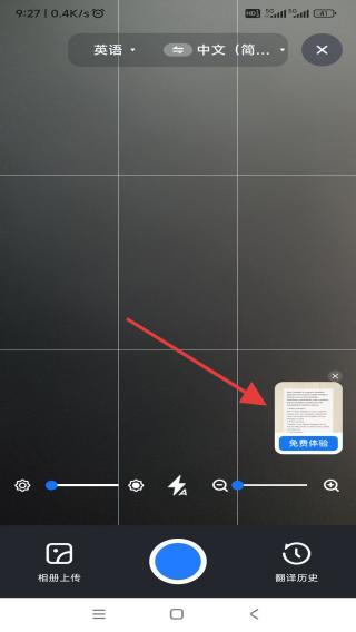 2、跳轉(zhuǎn)至拍照的頁面內(nèi),用戶可點(diǎn)擊右下免費(fèi)體驗(yàn)的區(qū)域。