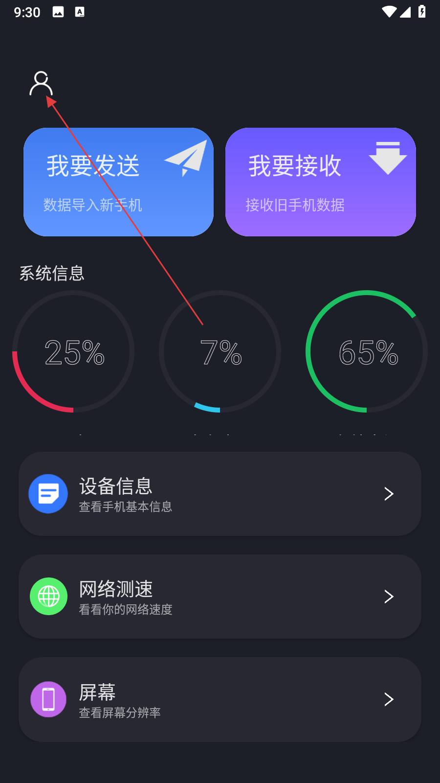 1、打開隔空投送軟件,點(diǎn)擊界面左上角的人形頭像圖標(biāo),進(jìn)入個(gè)人相關(guān)頁(yè)面。