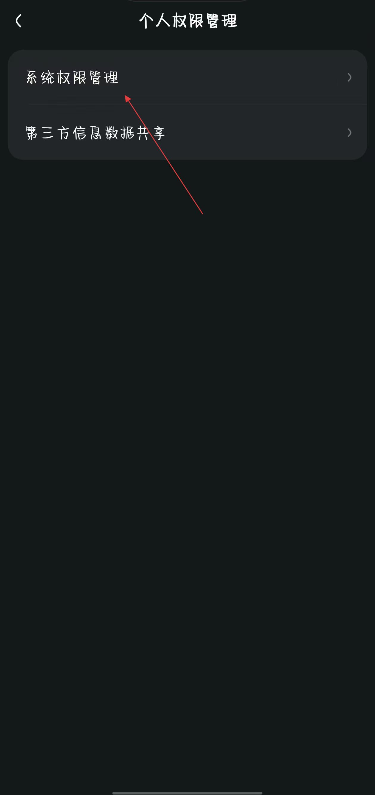 3、在個人權限管理頁面,點擊系統(tǒng)權限管理選項。