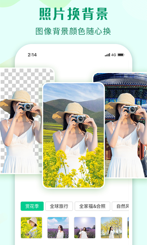 5、創(chuàng)意背景:海量創(chuàng)意模版素材定期更新,自由更換圖片背景,釋放奇思妙想。