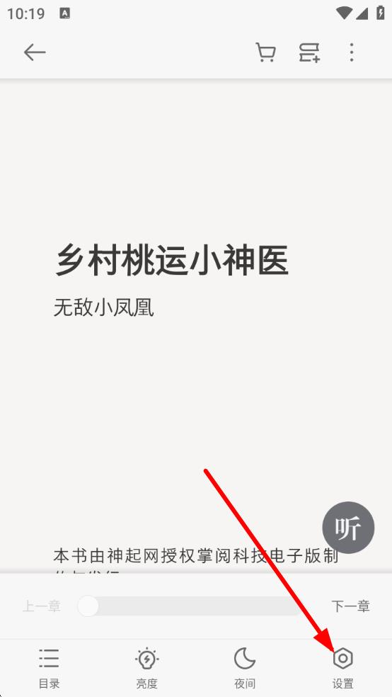 1、在掌閱閱讀界面,點(diǎn)擊右下角的設(shè)置圖標(biāo)進(jìn)入設(shè)置菜單。