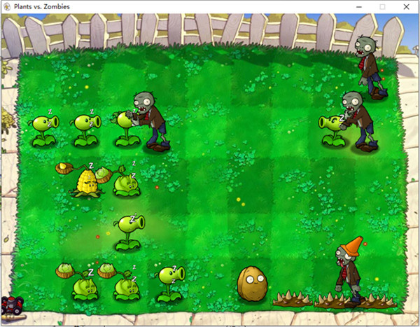 1、膽小菇不論前方有無僵尸,不斷射擊。
