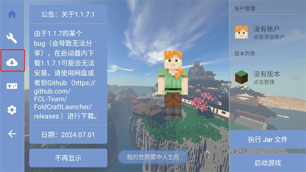 2、在這里需要自己添加游戲的版本,我們在右邊找到云盤下載,找到想要體驗(yàn)的游戲版本;