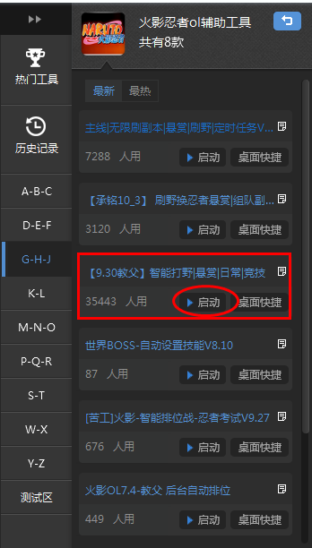 4.在火影忍者OL輔助工具中“啟動(dòng)”“火影忍者ol【教父】打野|懸賞|副本|競(jìng)技場(chǎng)”