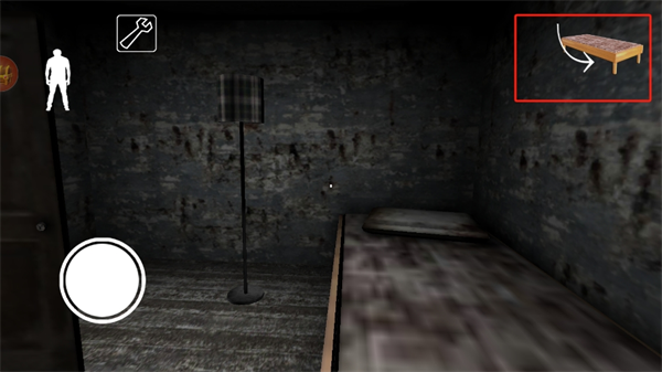4、如果聽到奶奶的來的聲音,可以躲避在床下避免與奶奶正面對上,在右上角點(diǎn)擊互動(dòng)鍵進(jìn)入床底;