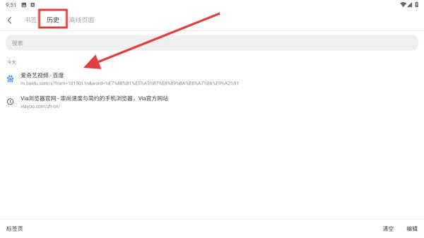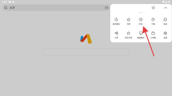 2、在彈出的菜單中,找到并點擊歷史選項即可跳轉(zhuǎn)到此頁面中。