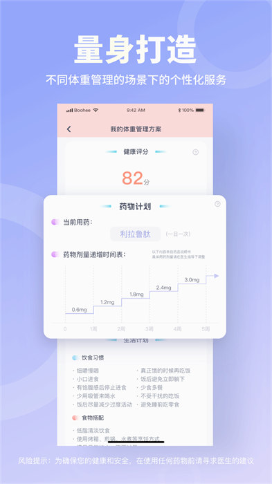 2、提供了配合藥物減肥的科學(xué)減肥的方案,為用戶們減肥增加良好的成效;