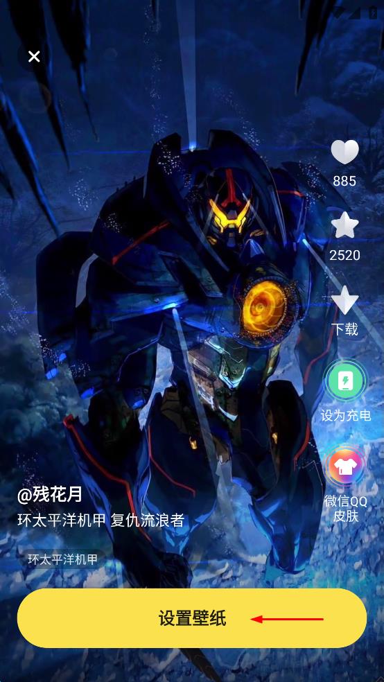 3、進入壁紙詳情頁面后,點擊下方醒目的“設(shè)置壁紙”按鈕,按照軟件的提示完成后續(xù)操作,即可將選中的壁紙設(shè)置為設(shè)備的壁紙。