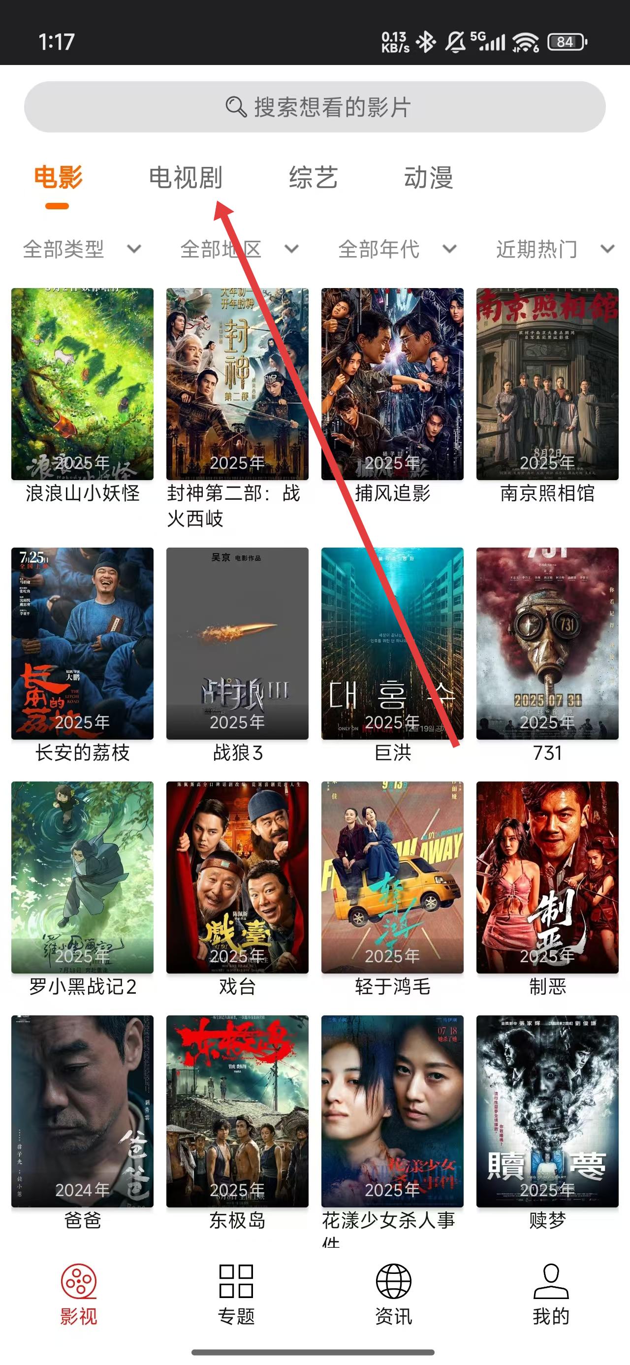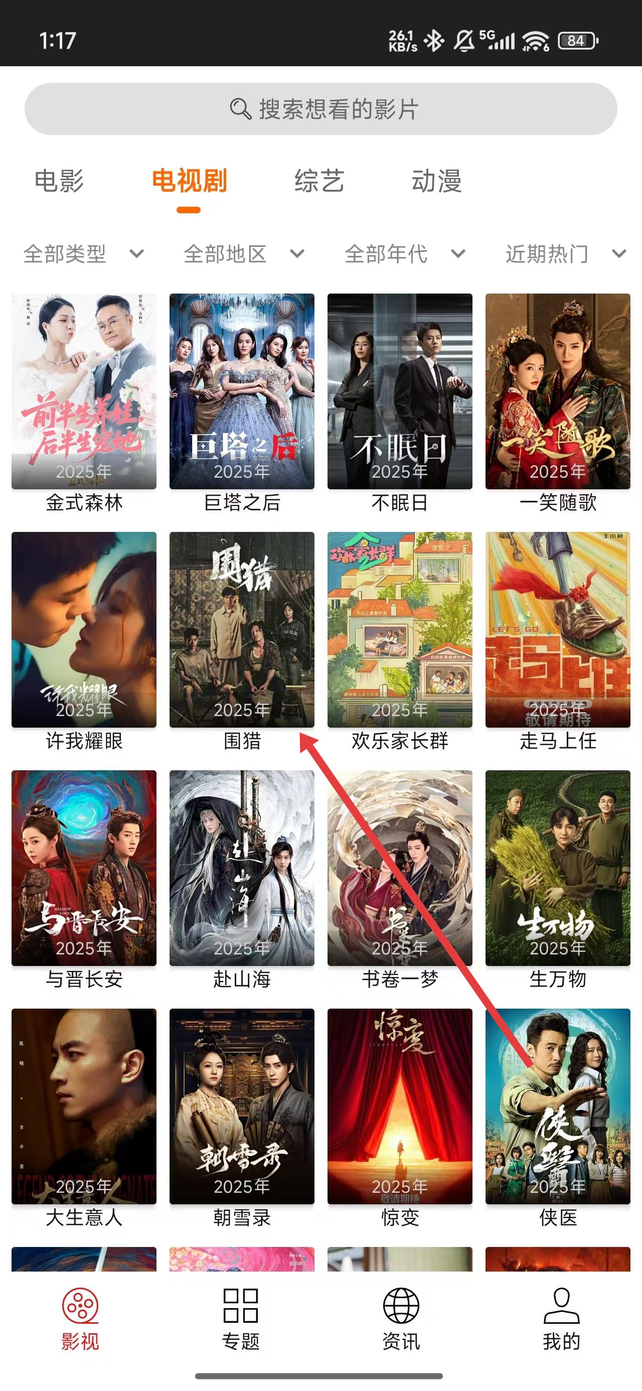 1、在進入到應(yīng)用首頁中,可以點擊上方電視劇按鈕,查看電視劇相關(guān)內(nèi)容。