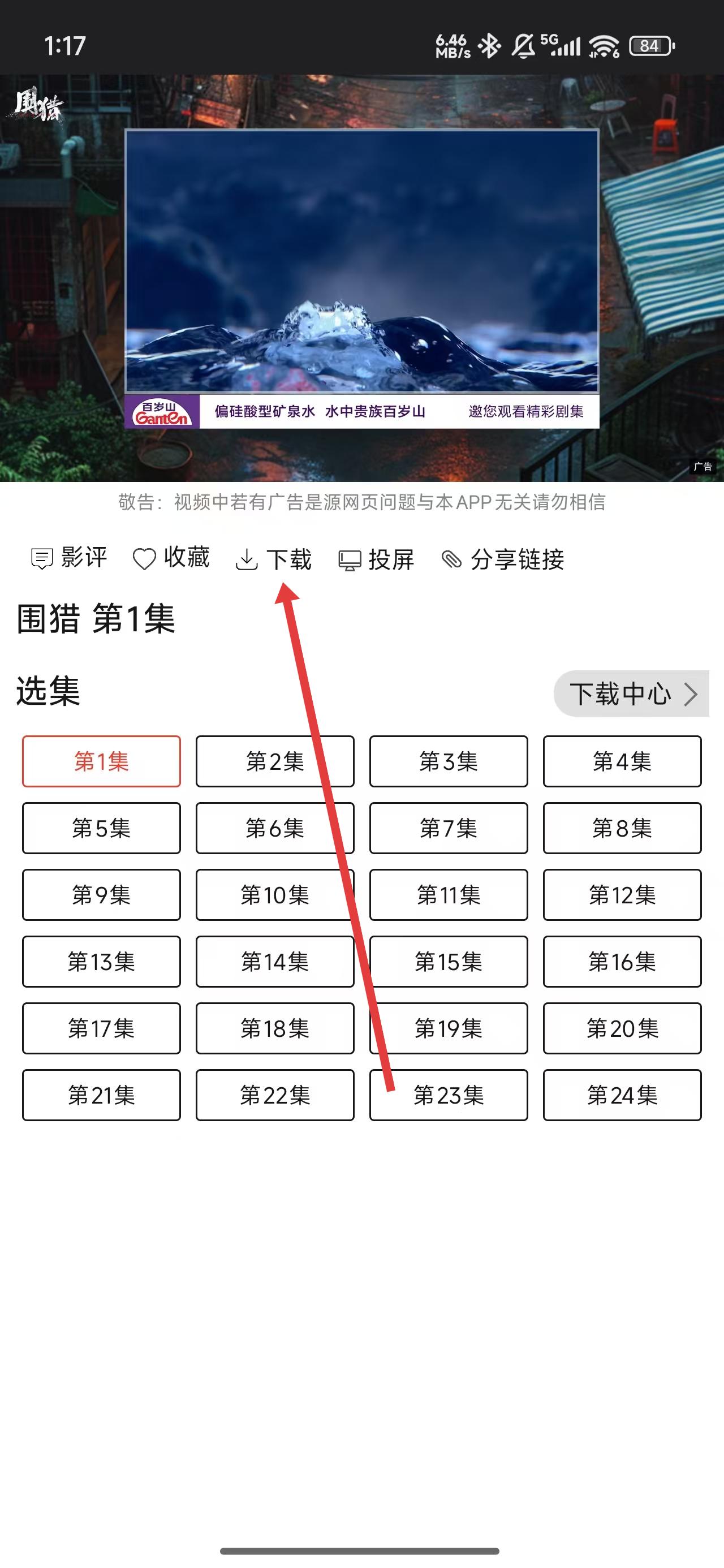 4、在進入到播放頁面后,若需要下載電視劇,可以點擊下載按鈕進行下載。