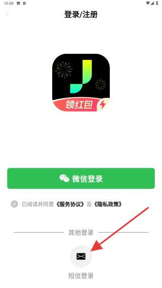 1、打開蕉果短劇app,在登錄/注冊界面內(nèi),點擊短信登錄的按鈕。