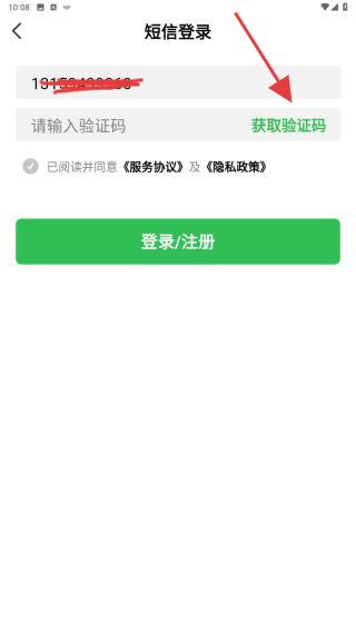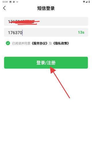 3、將收到的驗證碼輸入其中,再點擊登錄/注冊的按鈕。