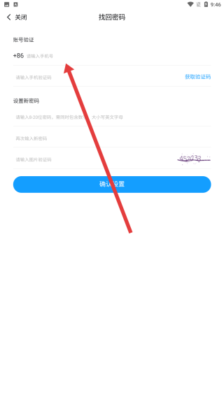 3、在找回密碼頁(yè)面中,在輸入框中輸入對(duì)應(yīng)信息完成找回密碼的操作。