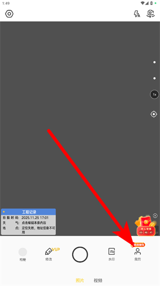 1、打開(kāi)修改水印相機(jī)應(yīng)用,點(diǎn)擊底部的我的選項(xiàng)。