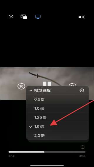 4、在全屏播放界面的底部或側(cè)邊工具欄中,找到倍速按鈕并點擊,會彈出1.0倍、1.25倍、1.5倍等選項的菜單,根據(jù)需求選擇對應倍速即可。