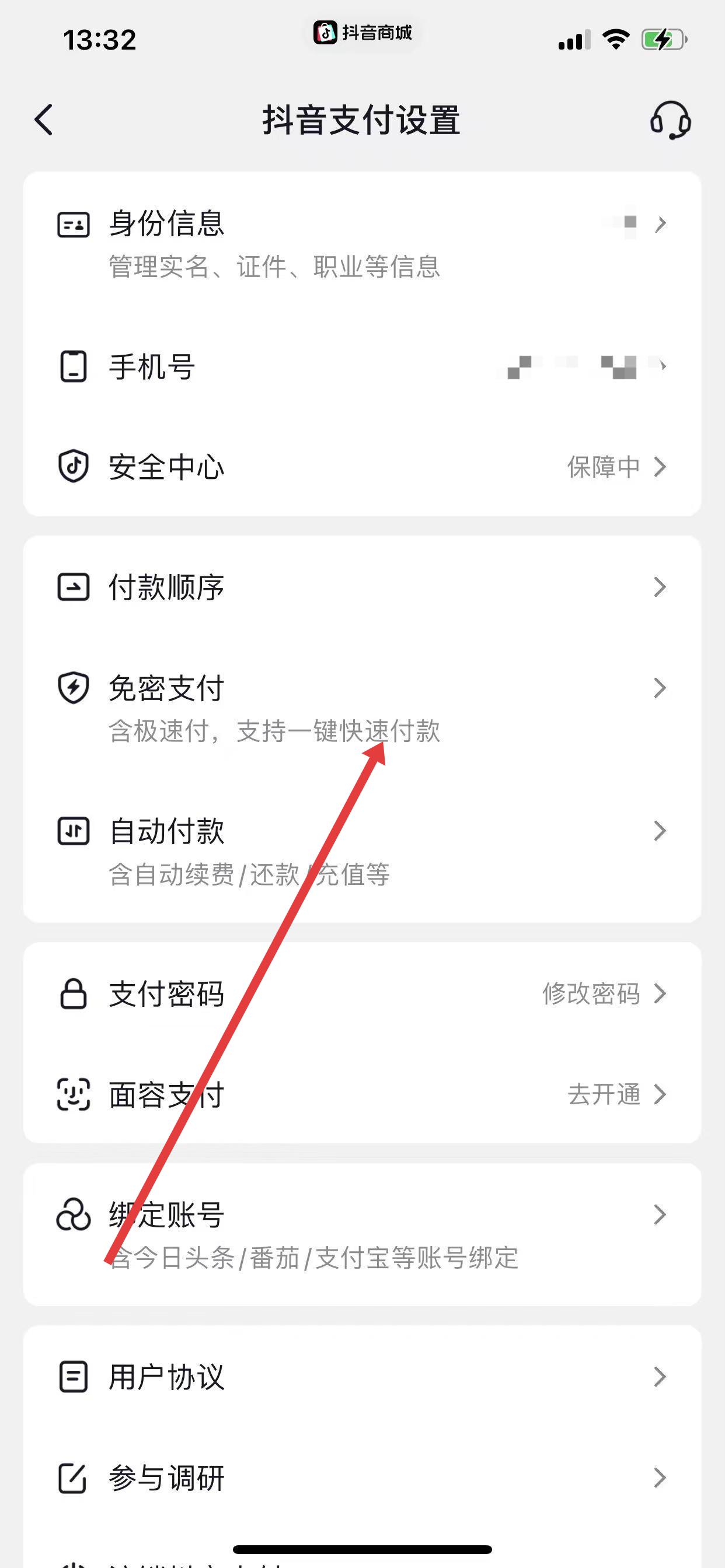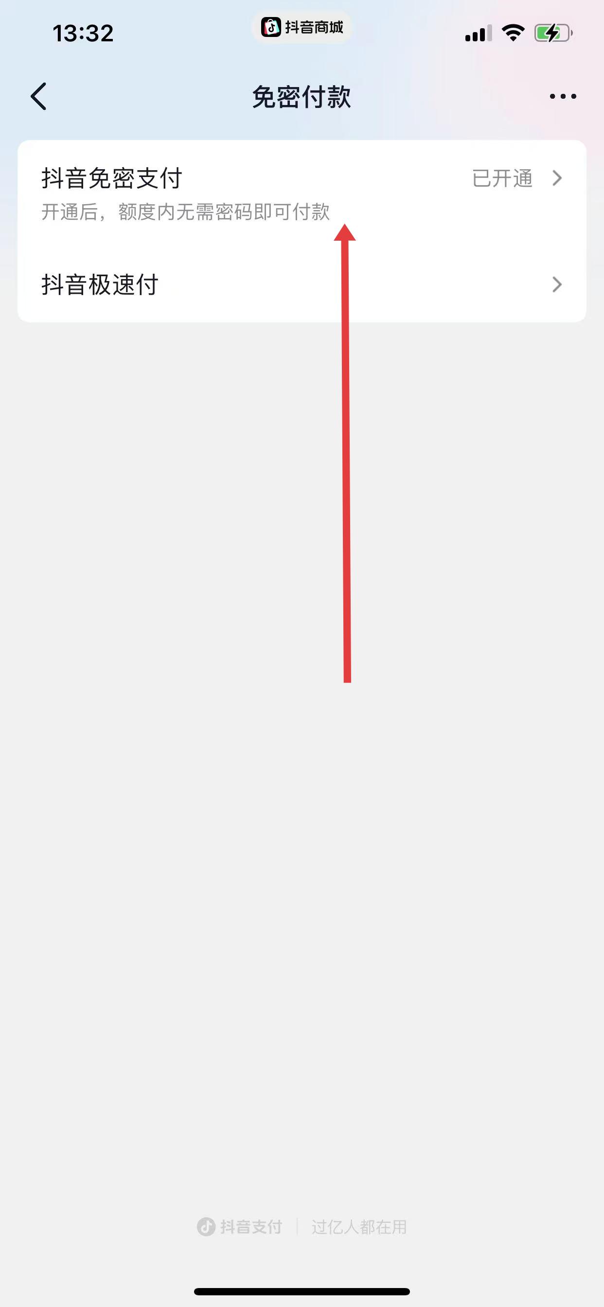 3、進入免密付款管理頁面,點擊抖音免密支付。