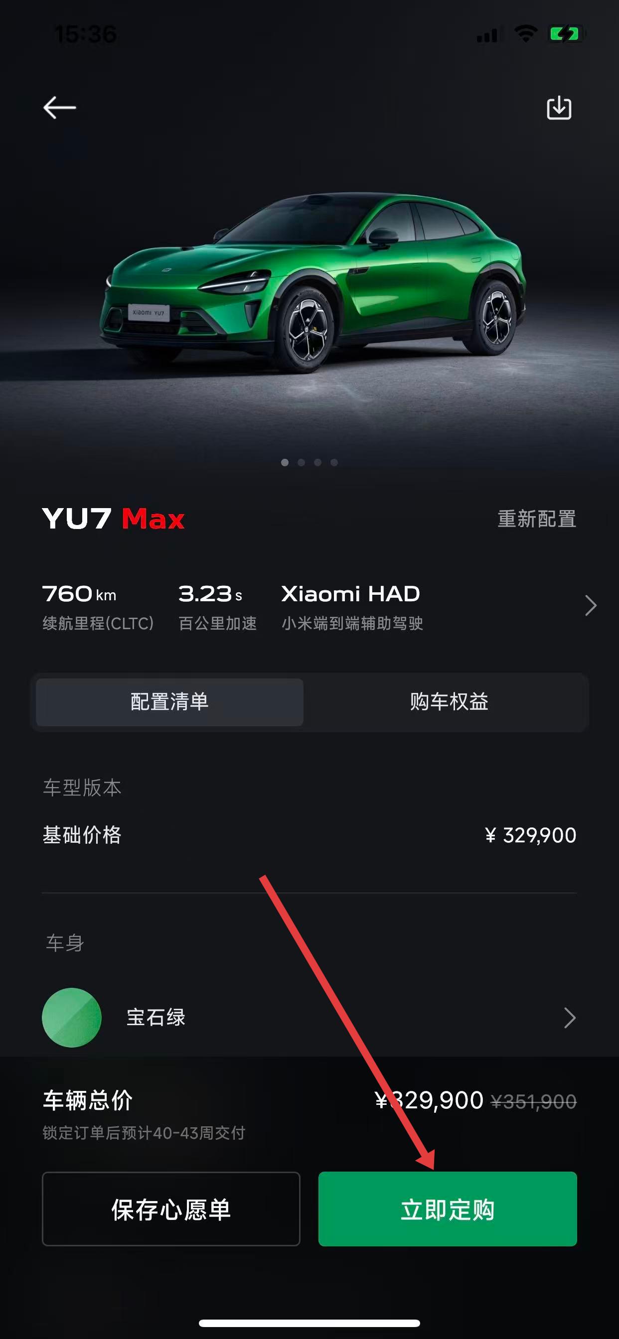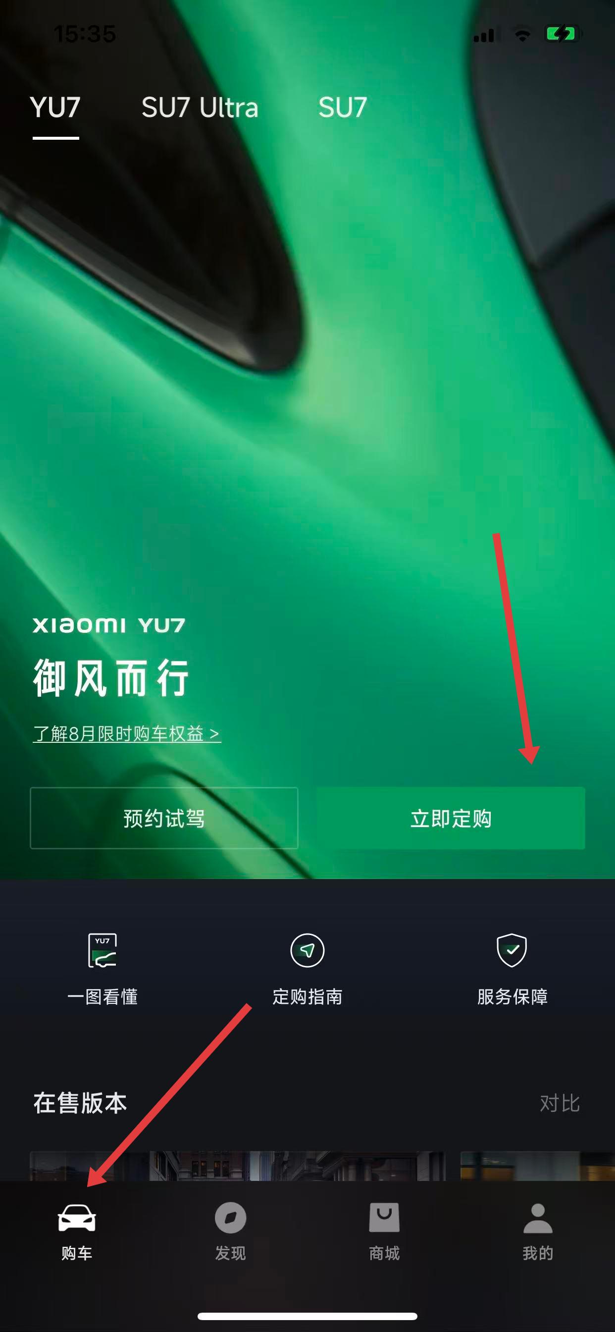 1、打開(kāi)小米汽車APP或進(jìn)入小米汽車官方網(wǎng)站,進(jìn)入購(gòu)車選項(xiàng),點(diǎn)擊立即定購(gòu)按鈕。