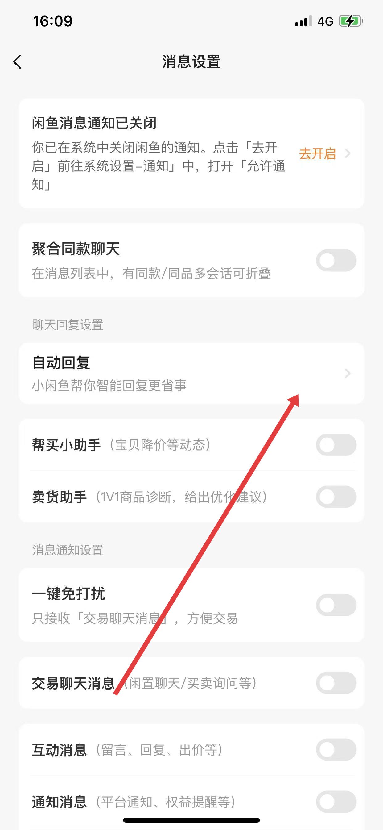 2、進入消息設(shè)置頁面,選擇自動回復,進入智能回復設(shè)置頁。