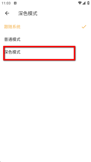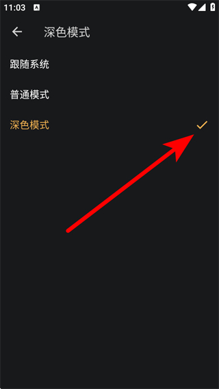 4、在選擇界面,勾選深色模式,即可開啟該功能。