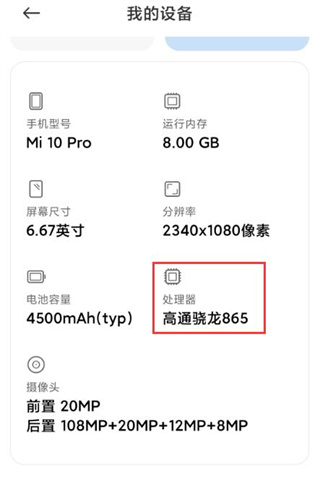 2、在設(shè)備信息中查看【處理器型號(hào)】是否為高通驍龍。