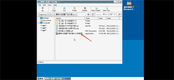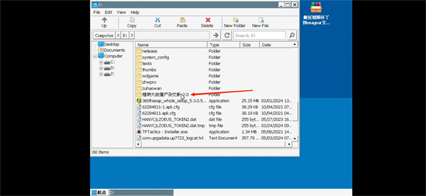 6.進(jìn)入模擬器后找到D盤-植物大戰(zhàn)僵尸雜交版2.0文件夾,找到植物大戰(zhàn)尸雜交版v2.0安裝程序即可開始安裝