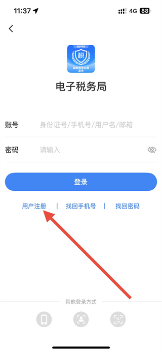 2、在登錄頁(yè)面點(diǎn)擊用戶注冊(cè)選項(xiàng),進(jìn)入用戶注冊(cè)頁(yè)面。