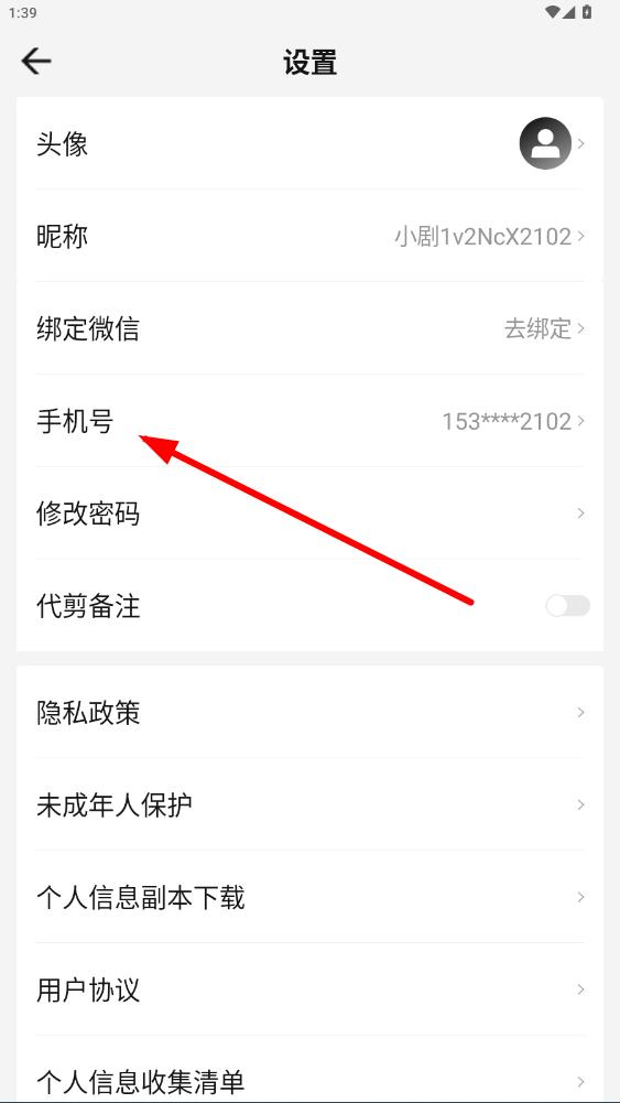 3、在設(shè)置界面里,點(diǎn)擊手機(jī)號(hào)選項(xiàng),進(jìn)入手機(jī)號(hào)修改流程。