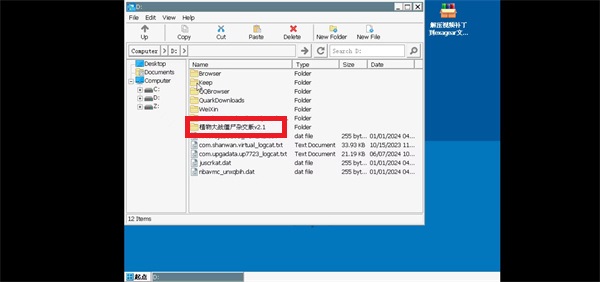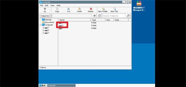 5、等待運行加載完成之后,就會進入到一個電腦桌面,拖動光標打開【D盤】進入到文件夾中;