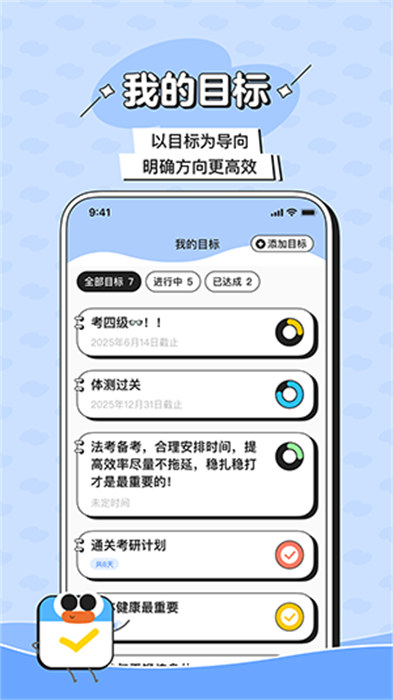 2、展示出用戶們今天全部的任務進度的內容,記錄并且追蹤能夠去顯著的提升;