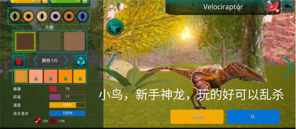 1、小鳥(niǎo)龍:非常適合新手玩家來(lái)玩這款恐龍,可以自由的和各種其他的恐龍們進(jìn)行作戰(zhàn);