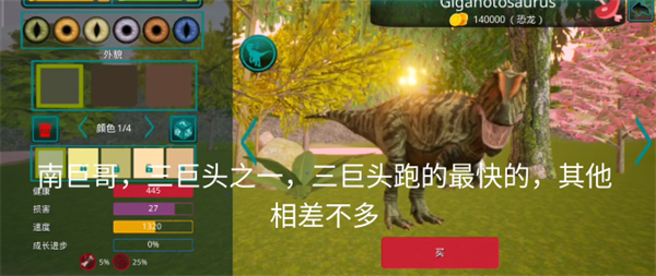 6、南巨哥:同樣是三巨頭之一,有著較快的奔跑速度,其他能力和另外兩個(gè)恐龍差不多,可以用于緊急避險(xiǎn)。