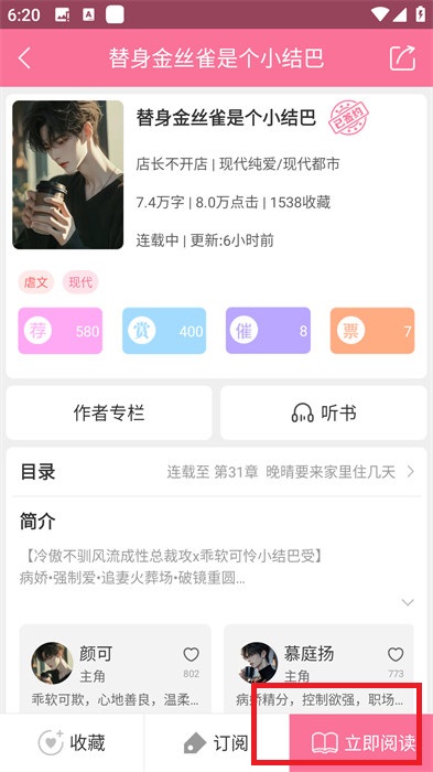2、在作品詳情中點(diǎn)擊下方的【開始閱讀】,進(jìn)入到閱讀界面;