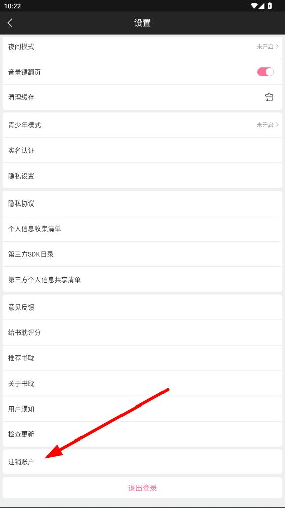 3、在設(shè)置頁(yè)面中,向下滑動(dòng)找到注銷賬戶選項(xiàng)并點(diǎn)擊。