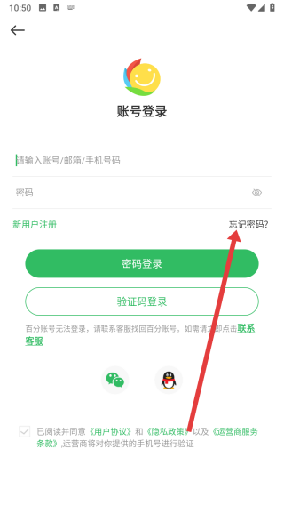 2、在進(jìn)入到登錄頁(yè)面中,若忘記了密碼,可以點(diǎn)擊右側(cè)的忘記密碼進(jìn)行解決。