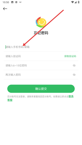 3、在跳轉(zhuǎn)到忘記密碼頁(yè)面后,點(diǎn)擊輸入框填寫手機(jī)號(hào)碼以便獲取驗(yàn)證碼。