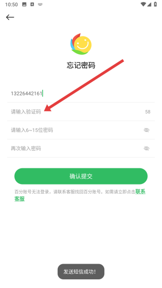 4、填寫完手機(jī)號(hào)獲取驗(yàn)證碼后,點(diǎn)擊輸入框填寫驗(yàn)證碼并在下方輸入新密碼,完成密碼的重置操作。